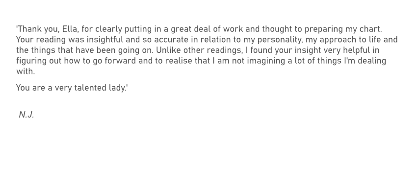 With warmth and intelligence, she helps clients explore their charts in a way that feels supportive, empowering, and deeply personal.
